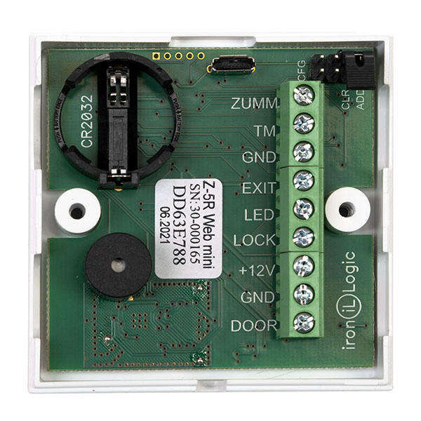 Z-5R Web Mini can be connected to LAN network using Wi-Fi connection, RS-485 network, directly to PC via USB port. This makes it possible to build a complete network access control system with a time tracking, event control and reports with our cloud access control solution.